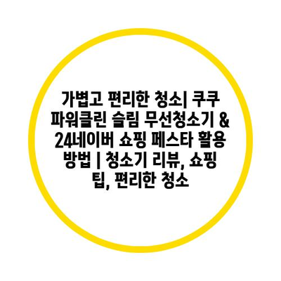 가볍고 편리한 청소| 쿠쿠 파워클린 슬림 무선청소기 & 24네이버 쇼핑 페스타 활용 방법 | 청소기 리뷰, 쇼핑 팁, 편리한 청소