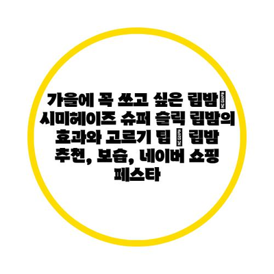 가을에 꼭 쓰고 싶은 립밤| 시미헤이즈 슈퍼 슬릭 립밤의 효과와 고르기 팁 | 립밤 추천, 보습, 네이버 쇼핑 페스타 에 대해 자주 묻는 질문 TOP 5