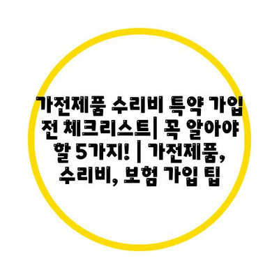 가전제품 수리비 특약 가입 전 체크리스트| 꼭 알아야 할 5가지! | 가전제품, 수리비, 보험 가입 팁