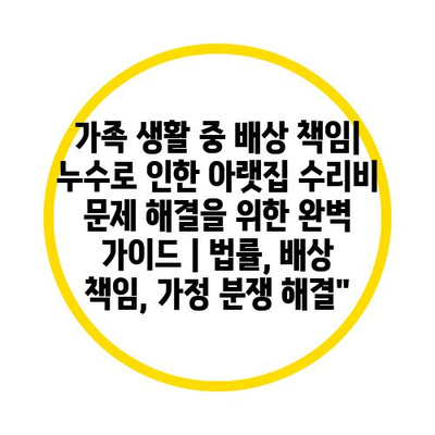가족 생활 중 배상 책임| 누수로 인한 아랫집 수리비 문제 해결을 위한 완벽 가이드 | 법률, 배상 책임, 가정 분쟁 해결”
