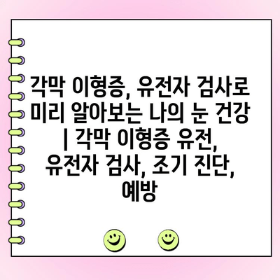 각막 이형증, 유전자 검사로 미리 알아보는 나의 눈 건강 | 각막 이형증 유전, 유전자 검사, 조기 진단, 예방