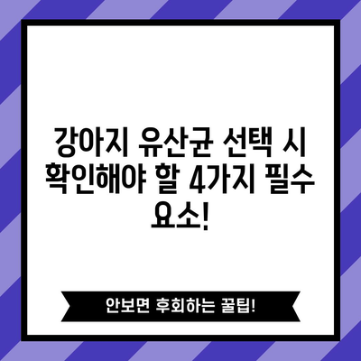 강아지 유산균을 선택할 때 꼭 확인해야 할 4가지 요소를 자세히 알아보고, 건강한 강아지를 위한 최적의 유산균 선택법을 안내합니다.