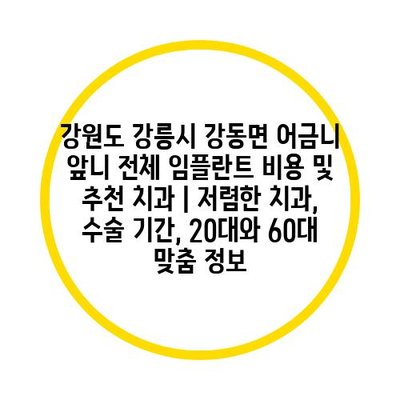 강원도 강릉시 강동면 어금니 앞니 전체 임플란트 비용 및 추천 치과 | 저렴한 치과, 수술 기간, 20대와 60대 맞춤 정보