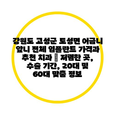 강원도 고성군 토성면 어금니 앞니 전체 임플란트 가격과 추천 치과 | 저렴한 곳, 수술 기간, 20대 및 60대 맞춤 정보