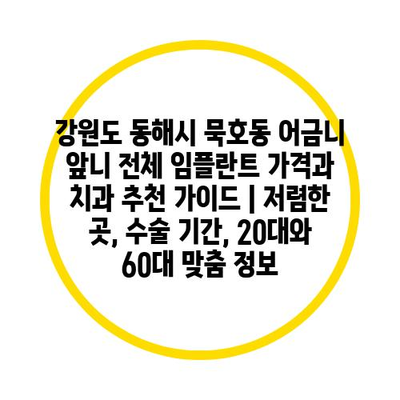 강원도 동해시 묵호동에서 어금니와 앞니 전체 임플란트를 생각하고 계신 분들을 위해 저렴하면서도 신뢰할 수 있는 치과를 추천제공합니다. 임플란트 치료는 고비용의 치료이며, 의료기관에 따라 가격 차이가 클 수 있습니다. 따라서, 합리적인 가격에 전문적인 치료를 받을 수 있는 치과를 선택하는 것이 중요합니다. 아래의 표에서는 동해시 묵호동에서 추천하는 임플란트 치과의 리스트를 정리했습니다. 연령대에 따른 적절한 정보도 함께 제공하니 참고해 주시기 바랍니다.
