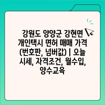 ✅ 강원도 양양군 강현면 개인택시 면허 매매 가격, 궁금한 점을 해결해 드립니다! 오늘 시세, 자격조건, 월수입, 양수교육 관련 정보를 확인하세요.