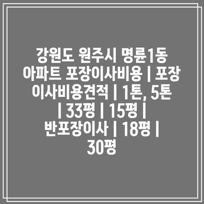 강원도 원주시 명륜1동 아파트 포장이사비용 | 포장 이사비용견적 | 1톤, 5톤 | 33평 | 15평 | 반포장이사 | 18평 | 30평 에 대해 자주 묻는 질문 TOP 5