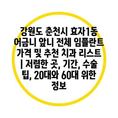 강원도 춘천시 효자1동에서 어금니와 앞니 전체 임플란트를 생각하고 계신다면, 가격과 추천 치과에 대한 내용을 참고하시는 것이 좋습니다.