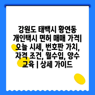 강원도 태백시 황연동 개인택시 면허 매매 가격| 오늘 시세, 번호판 가치, 자격 조건, 월수입, 양수 교육 | 상세 가이드