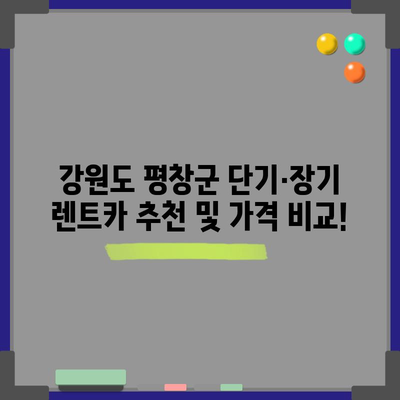 💡 평창군에서의 알뜰 렌트카 이용 방법을 알아보세요! 💡
