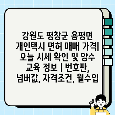 강원도 평창군 용평면 개인택시 면허 매매 가격| 오늘 시세 확인 및 양수 교육 정보 | 번호판, 넘버값, 자격조건, 월수입 에 대해 자주 묻는 질문 TOP 5