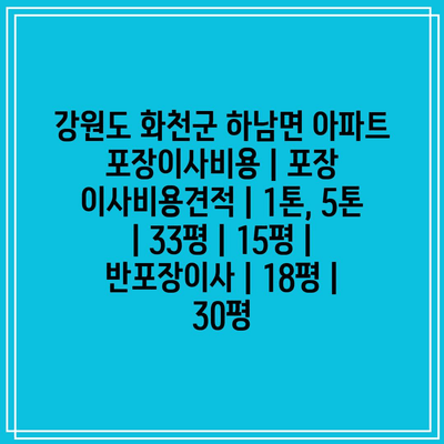 강원도 화천군 하남면 아파트 포장이사비용 | 포장 이사비용견적 | 1톤, 5톤 | 33평 | 15평 | 반포장이사 | 18평 | 30평 에 대해 자주 묻는 질문 TOP 5