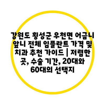 강원도 횡성군 우천면에서 어금니와 앞니 전체 임플란트를 고려하는 분들을 위한 가격 및 치과 추천 설명서를 알려알려드리겠습니다.