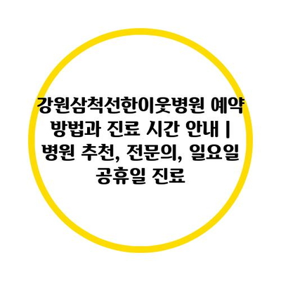 강원삼척선한이웃병원 예약 방법과 진료 시간 공지 | 병원 추천, 전연락, 일요일 공휴일 진료 에 대해 자주 묻는 질문 TOP 5