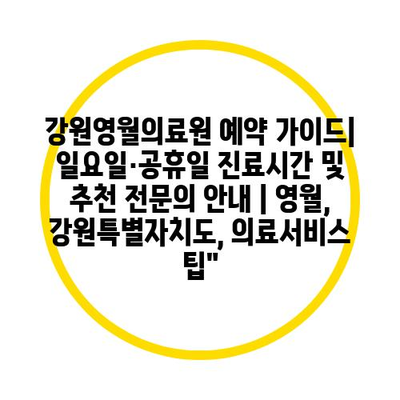강원영월의료원 예약 설명서| 일요일·공휴일 진료시간 및 추천 전연락 공지 | 영월, 강원특별자치도, 의료서비스 팁
