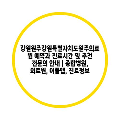 ✅ 강원도 원주 의료원의 진료 시간과 예약 방법을 지금 확인해 보세요.