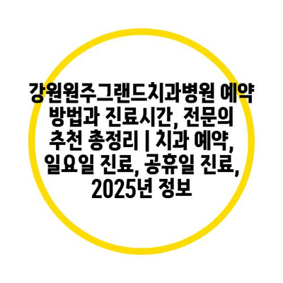 강원원주그랜드치과병원 예약 방법과 진료시간, 전연락 추천 총정리 | 치과 예약, 일요일 진료, 공휴일 진료, 2025년 정보에 대해 공지해 알려드리겠습니다.