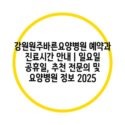강원원주바른요양병원 예약과 진료시간 공지 | 일요일 공휴일, 추천 전연락 및 요양병원 정보 2025 에 대해 자주 묻는 질문 TOP 5