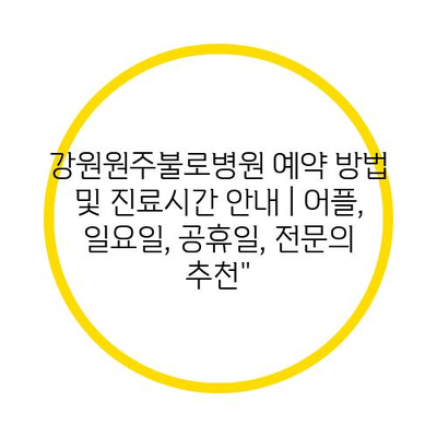 강원원주불로병원 예약 방법 및 진료시간 공지 | 어플, 일요일, 공휴일, 전연락 추천에 대해 자주 묻는 질문 TOP 5