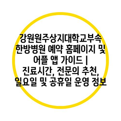 강원원주상지대학교부속 한방병원 예약 홈페이지 및 어플 앱 가이드 | 진료시간, 전문의 추천, 일요일 및 공휴일 운영 정보