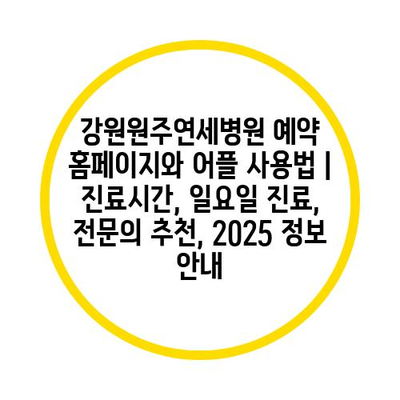 강원원주연세병원 예약 홈페이지와 어플 사용법 | 진료시간, 일요일 진료, 전연락 추천, 2025 정보 공지 에 대해 자주 묻는 질문 TOP 5