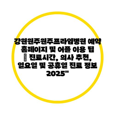 강원원주원주프라임병원 예약 홈페이지 및 어플 이용 팁 | 진료시간, 의사 추천, 일요일 및 공휴일 진료 정보 2025