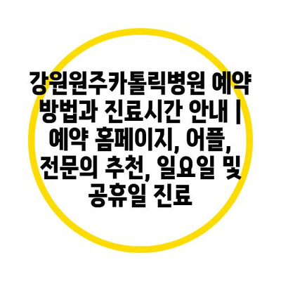 ✅ 강원원주카톨릭병원의 예약 방법을 쉽게 알아보세요!