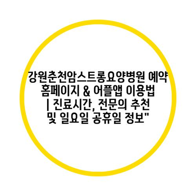 강원춘천암스트롱요양병원 예약 홈페이지 & 어플앱 이용법 | 진료시간, 전연락 추천 및 일요일 공휴일 정보에 대해 자주 묻는 질문 TOP 5