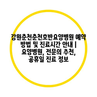 강원춘천춘천호반요양병원 예약 방법 및 진료시간 공지 | 요양병원, 전연락 추천, 공휴일 진료 정보 에 대해 자주 묻는 질문 TOP 5