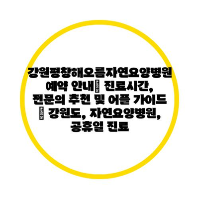 강원평창해오름자연요양병원 예약 안내| 진료시간, 전문의 추천 및 어플 가이드 | 강원도, 자연요양병원, 공휴일 진료