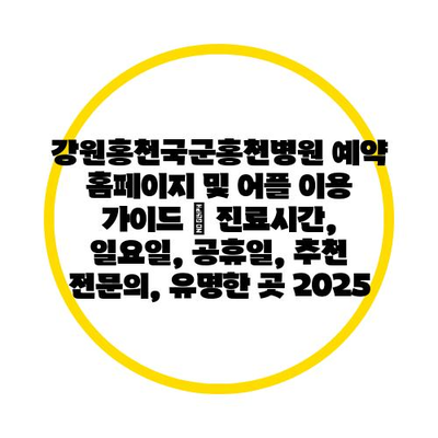 ✅ 강원홍천국군홍천병원 예약 방법과 팁을 알아보세요.
