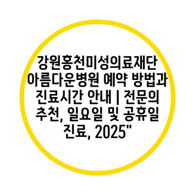 강원홍천미성의료재단 아름다운병원 예약 방법과 진료시간 공지 | 전연락 추천, 일요일 및 공휴일 진료, 2025″ 에 대해 자주 묻는 질문 TOP 5