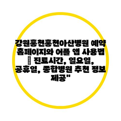 강원홍천홍천아산병원 예약 홈페이지와 어플 앱 사용법 | 진료시간, 일요일, 공휴일, 종합병원 추천 정보 제공”