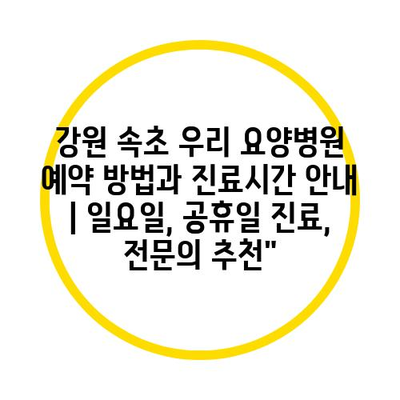 ✅ 강원 속초 우리 요양병원의 예약 방법과 진료시간을 알아보세요.