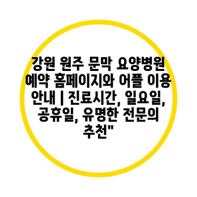 ✅ 원주 요양병원의 진료시간과 예약 방법을 지금 바로 알아보세요!