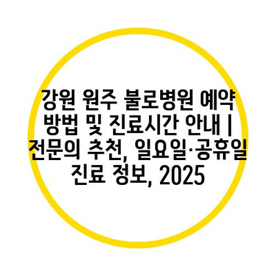강원 원주 불로병원 예약 방법 및 진료시간 공지 | 전연락 추천, 일요일·공휴일 진료 정보, 2025 에 대해 자주 묻는 질문 TOP 5