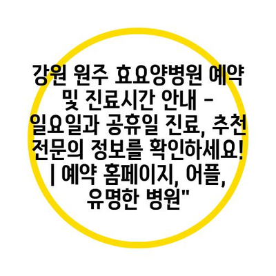 강원 원주 효요양병원 예약 및 진료시간 공지 – 일요일과 공휴일 진료, 추천 전연락 내용을 확인하세요!