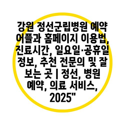 강원 정선군립병원 예약 어플과 홈페이지 이용법, 진료시간, 일요일·공휴일 정보, 추천 전연락 및 잘 보는 곳 | 정선, 병원 예약, 의료 서비스, 2025″ 에 대해 자주 묻는 질문 TOP 5