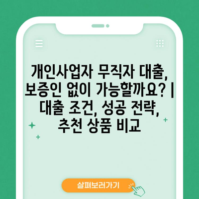 개인사업자 무직자 대출, 보증인 없이 가능할까요? | 대출 조건, 성공 전략, 추천 상품 비교