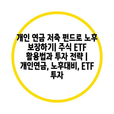 이 글에서는 개인 연금 저축 펀드를 통해 노후를 대비하는 방법과 ETF 투자 전략에 대해 다루어 보겠습니다.