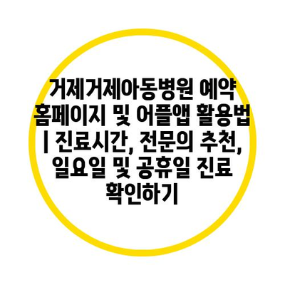 거제거제아동병원의 진료시간과 예약 방법을 지금 바로 확인해 보세요.