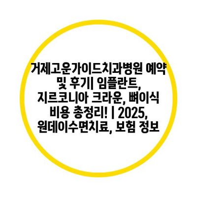 거제고운설명서치과병원 예약 및 후기| 임플란트, 지르코니아 크라운, 뼈이식 비용 총정리! | 2025, 원데이수면치료, 보험 정보 에 대해 자주 묻는 질문 TOP 5