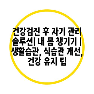 건강검진 후 자기 관리 솔루션은 매우 중요합니다. 자신의 건강 상태를 점검하고, 이를 바탕으로 생활습관과 식습관을 개선하는 것이 필요합니다.