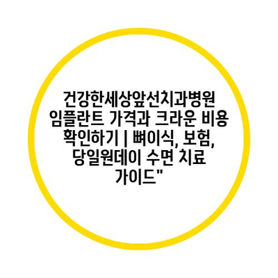 건강한세상앞선치과병원 임플란트 가격과 크라운 비용 확인하기 | 뼈이식, 보험, 당일원데이 수면 치료 설명서