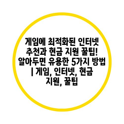게임에 최적화된 인터넷 추천과 현금 지원 꿀팁! 알아두면 유용한 5가지 방법 | 게임, 인터넷, 현금 지원, 꿀팁 에 대해 자주 묻는 질문 TOP 5