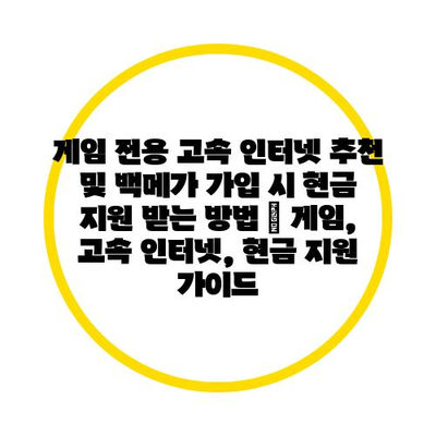 게임 전용 고속 인터넷 추천 및 백메가 가입 시 현금 지원 받는 방법 | 게임, 고속 인터넷, 현금 지원 가이드