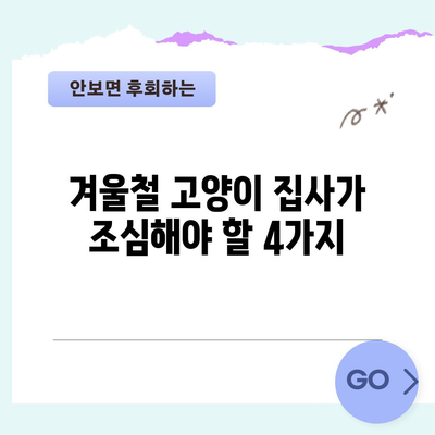 겨울철 고양이 집사가 조심해야 할 4가지 사항은 건조한 공기 관리, 바이러스 감염 예방, 비만 관리, 그리고 수분 섭취량 증가입니다. 겨울철은 고양이의 면역력이 떨어지는 시기이므로, 세심한 관찰과 관리가 필요합니다. 집사로서의 역할은 고양이가 건강하고 편안하게 지낼 수 있도록 도와주는 것입니다. 귀여운 고양이를 위해 오늘 바로 필요한 조치를 취해보세요!