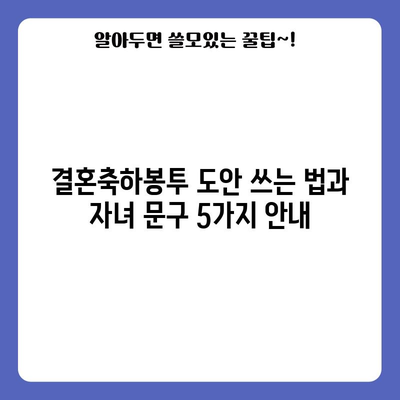 결혼축하봉투 도안 쓰는법과 자녀를 위한 문구를 소개합니다. 특별한 결혼 축하의 순간을 더욱 의미 있게 만들기 위한 팁과 예시를 확인해보세요.