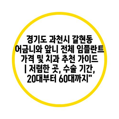 경기도 과천시 갈현동 어금니와 앞니 전체 임플란트 가격 및 치과 추천 설명서 | 저렴한 곳, 수술 날짜, 20대부터 60대까지