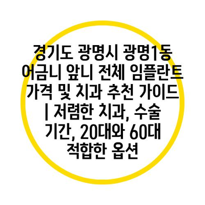 저렴한 치과를 찾는 것은 임플란트 시술에 있어 중요한 요소입니다. 광명1동에는 경제적인 가격과 함께 양질의 서비스를 제공하는 여러 치과가 있습니다. 예를 들어, ‘광명치과’, ‘힐링치과’ 등은 리뷰에서도 높은 만족도를 보이고 있어 추천할 만한 곳입니다.